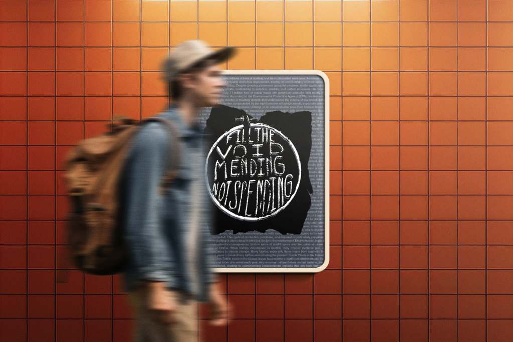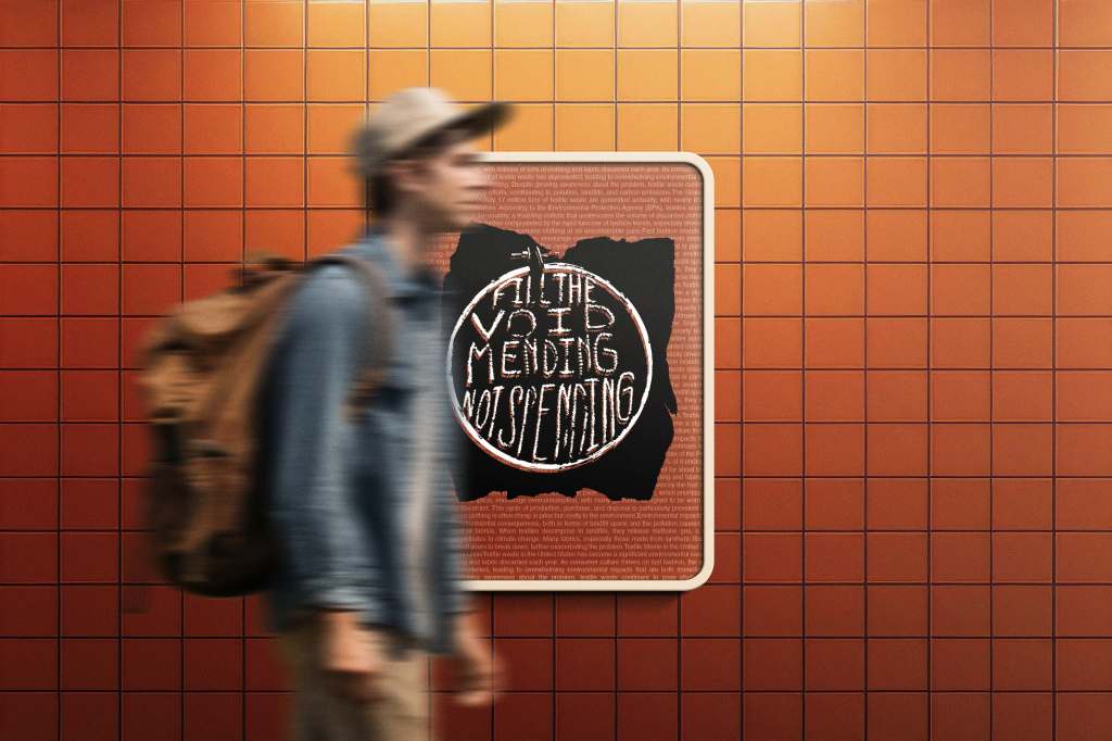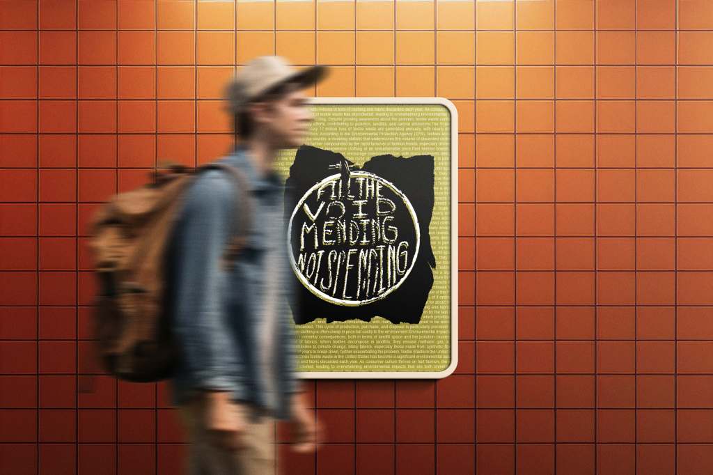 Created for a college class, Filling the Void by Mending, Not Spending project promotes sustainability by encouraging repair over replacement. This design was inspired by concert zines of the 90s and 2000s.