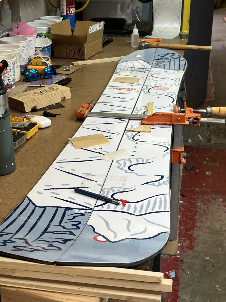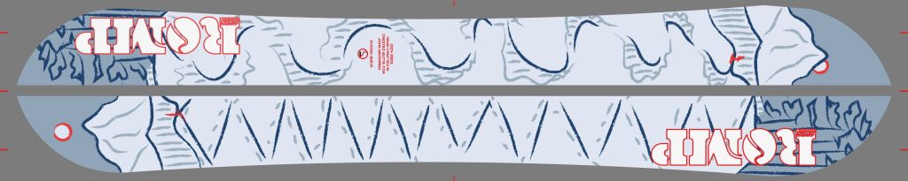 A custom top sheet graphic designed for a splitboard touring deck, created in collaboration with ROMP Skis in Crested Butte, Colorado. Using Adobe Illustrator and Photoshop, I worked through several design iterations with the customer to refine the final aesthetic. The result captures the essence of backcountry exploration while enhancing the board’s visual identity.